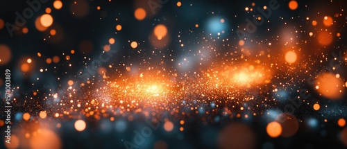 © Iswanto, Fototapeta premium Abstract image with orange light specks on a blue dark backdrop, resembling stardust and bokeh effect