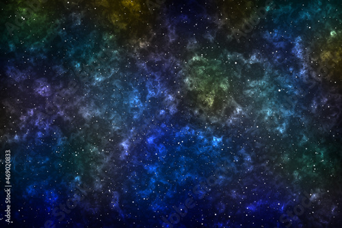 © IKT224, Obraz premium Abstract imaginative dark multi coloured artificial stellar lighting image based on galaxies and nebula and other astronomy photography.