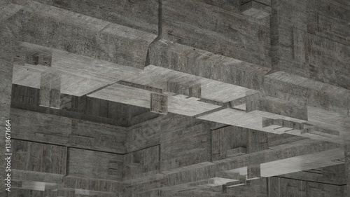 © Kseniia, Fototapeta premium Abstract industrial concrete space with columns, 3 d render