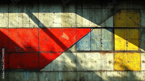 © AFFANYUDA, Naklejka premium Abstract industrial wall with vibrant color panels
