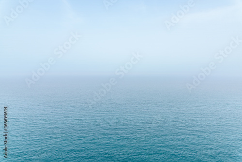 Fototapeta premium Abstract infinity sea view with small wave pattern and fog on horizon, clear...