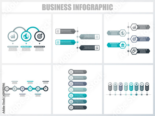 Obraz premium Abstract infographics number options template 3, 4, 5, 6, 7, 8. Vector illustration. Can be used for workflow layout, diagram, strategy business step options, banner and web design set.