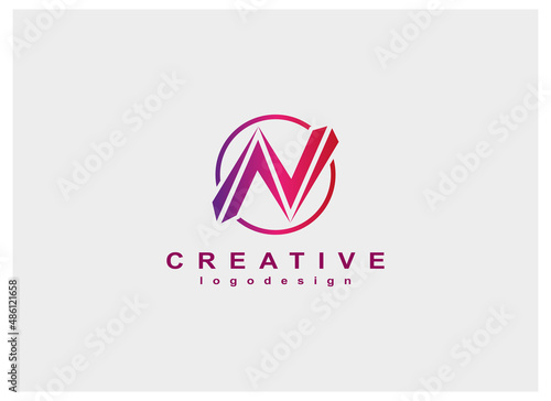 Obraz premium Abstract Initial Letter N Logo. Geometric Shape Letter N inside Circle...