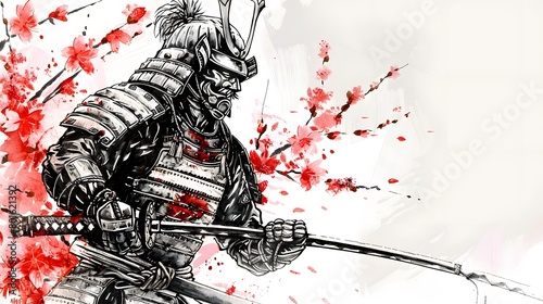 Obraz premium Abstract ink drawing of a samurai. Japanese style art.