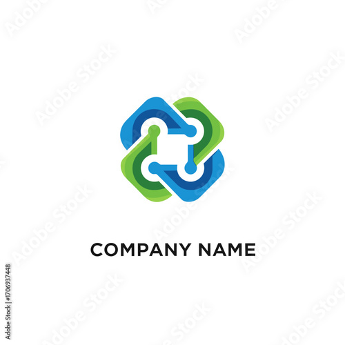 Fototapeta premium Abstract Interconnected Blue and Green Geometric Logo Design