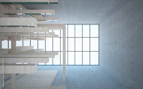 Obraz premium Abstract interior of wood, glass and concrete. 3D illustration. rendering