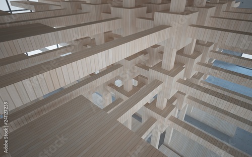 Naklejka premium Abstract interior of wood, glass and concrete. 3D illustration. rendering