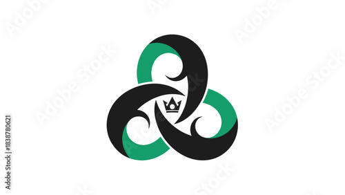 © Alienmarsh, Obraz premium Abstract interwoven loop symbol with a central crown design.