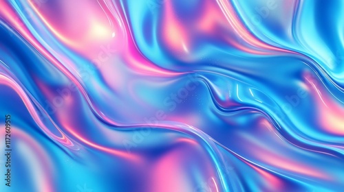 Fototapeta premium Abstract iridescent holographic fluid background with pink and blue swirls.