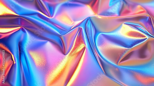Fototapeta premium Abstract iridescent holographic texture with flowing, wavy pattern