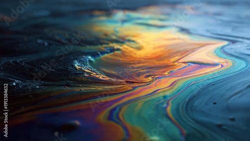 © Vibudhaart, Fototapeta premium Abstract iridescent oil slick on water