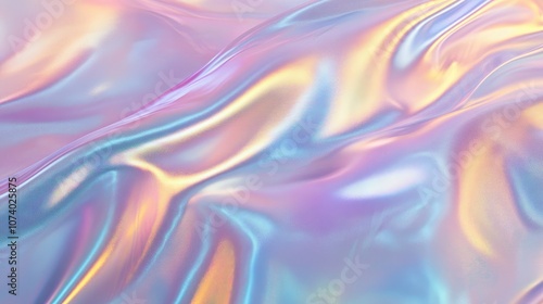 © Cyber Shutter, Obraz premium Abstract Iridescent Texture Background Liquid Holographic Design Modern Neon Rainbow Curved Wave In Soft Pastel Gradient Colors