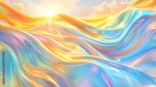 © lisa, Obraz premium Abstract iridescent waves under a bright sun
