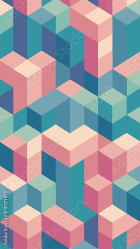 © Khan, Obraz premium Abstract isometric cube pattern illustration featuring soft pastel tones suitable for backgrounds