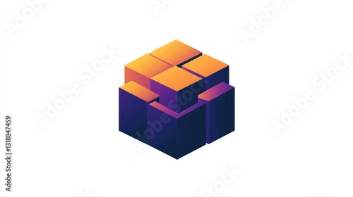 Fototapeta premium Abstract isometric cube structure with gradient colors.