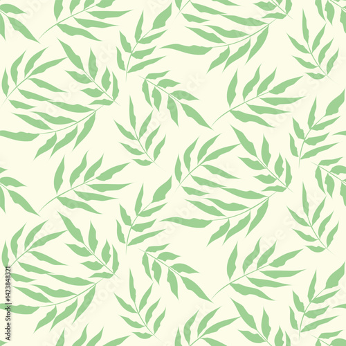 © yasminepatterns, Naklejka premium Abstract jade Green Botanical leaves on branches seamless pattern on white background. For wallpaper, home décor and fabric