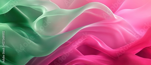 © niti, Obraz premium Abstract Japanese textile pattern with interwoven yellow and green waves, dynamic and fluid design