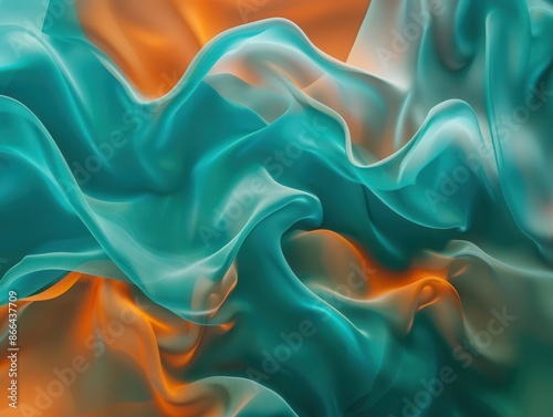 © Bijac, Fototapeta premium abstract 4k wallpaper featuring a mesmerizing blend of teal and orange shapes creating a modern and dynamic design