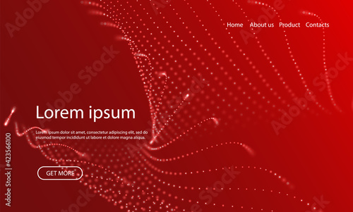 Obraz premium Abstract landing page background with red particles. Flow wave with dot...