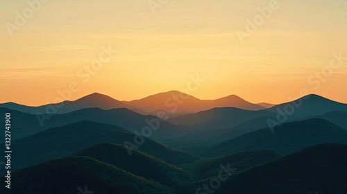 © PBMasterDesign, Obraz premium Abstract landscape background concept. A stunning sunset over rolling mountains, creating a serene atmosphere and beautiful scenery.