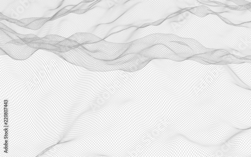 © Plastic man, Obraz premium Abstract landscape on a white background. Cyberspace grid. Hi-tech network. 3d technology illustration
