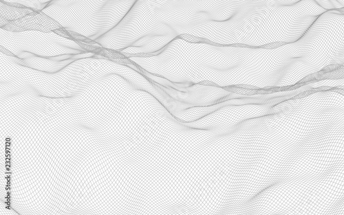 Obraz premium Abstract landscape on a white background. Cyberspace grid. Hi-tech network. 3d technology illustration