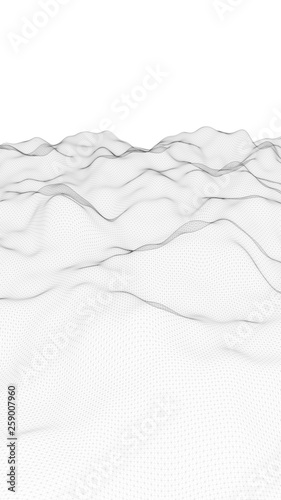Obraz premium Abstract landscape on a white background. Cyberspace grid. Hi-tech network. 3d technology illustration