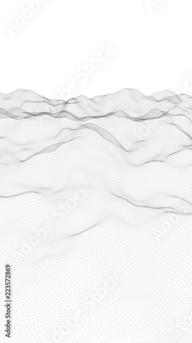 Obraz premium Abstract landscape on a white background. Cyberspace grid. Hi-tech network. Vertical image orientation. 3D illustration