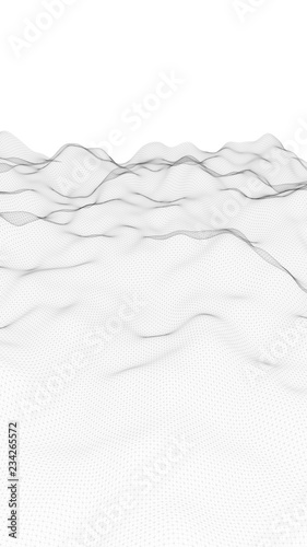Obraz premium Abstract landscape on a white background. Cyberspace grid. Hi-tech network. Vertical image orientation. 3D illustration