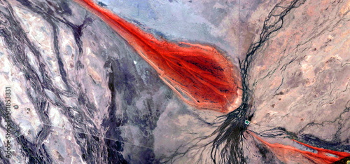 © munimara, Obraz premium abstract landscape photo of the deserts of Africa from the air emulating the shapes and colors of the apocalypse, Genre: Abstract naturalism, from the abstract to the figurative