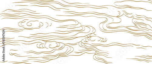 © Marukopum, Obraz premium Abstract landscape with Japanese wave pattern vector. Nature art background with Chinese wave and cloud template in oriental style