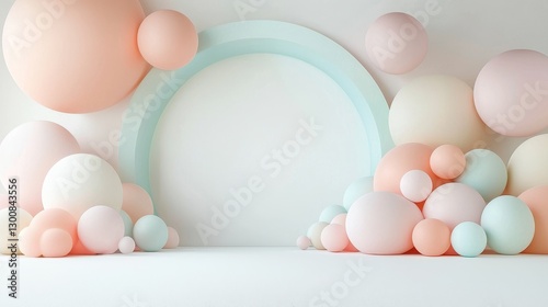 © Mongkol, Fototapeta premium Abstract landscape with pastel curves and childlike elements in soft background design