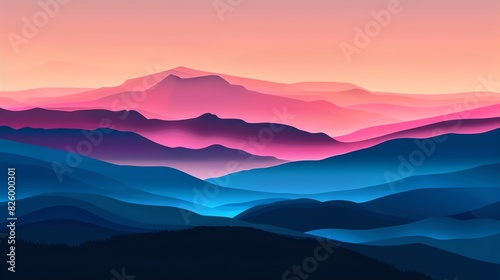 Obraz premium Abstract landscape with pink and blue mountains at sunset.