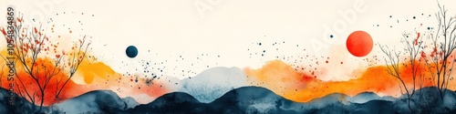 © Dikina, Obraz premium Abstract landscape with vibrant colors and celestial elements.
