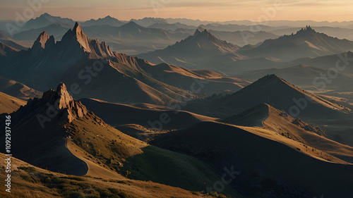 Fototapeta premium Abstract landscape with wavy hills and sharp peaks. Background\Wallpaper