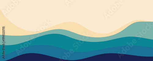 Fototapeta premium Abstract layered blue teal beige wave background illustration