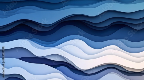 Fototapeta premium Abstract layered design with undulating, cool blue hues.