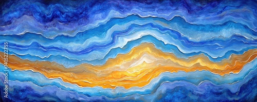 © Fitri, Obraz premium Abstract layered landscape of blues and golds