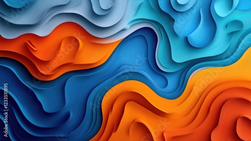 © Almahyra, Obraz premium Abstract layered paper waves, blue orange texture, background design, website banner