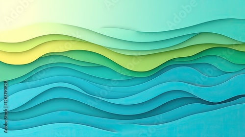 © BloomArt, Fototapeta premium Abstract layered waves of green and blue hues