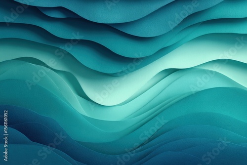 Fototapeta premium Abstract layers of teal and aqua paper create a serene wave effect, suitable...