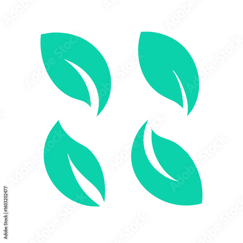 Obraz premium Abstract leaf icons set in flat design style, eco-friendly concept, green...