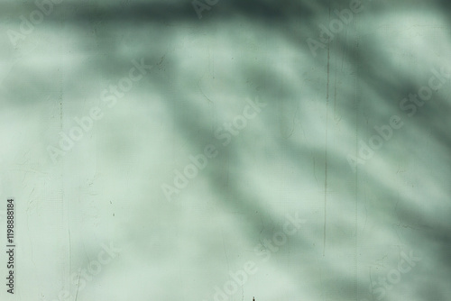 Naklejka premium Abstract leaf shadow and light on green wall background, overlay effect for...