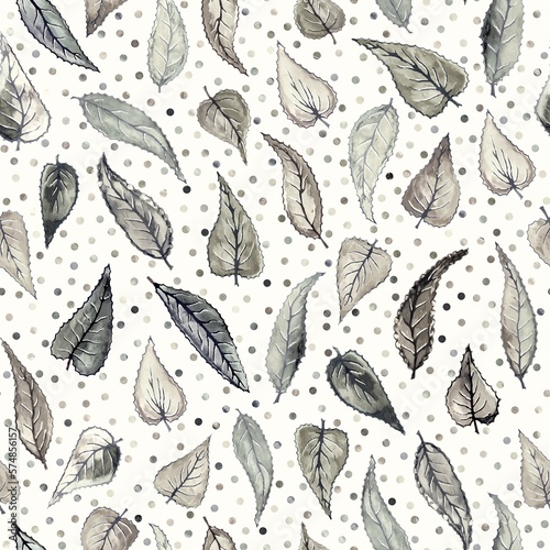 © Nina Maria, Obraz premium Abstract leaves blend repeat seamless pattern. Watercolor and digital drawing by hand. mixed media for textile design, packaging, wallpaper, banner design.