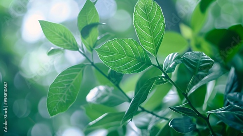 © IgitPro, Fototapeta premium Abstract leaves in the background, a pattern that echoes nature's design. Bright green decoration, a representation of plant life.