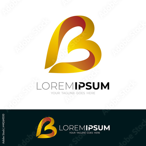 © nur, Fototapeta premium Abstract letter B logo with 3d design vector, gold color