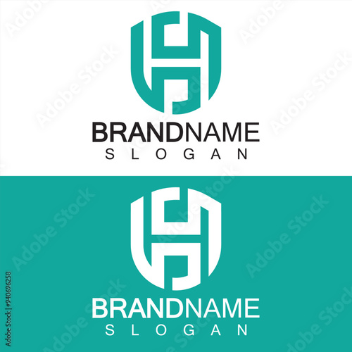 Fototapeta premium Abstract Letter H Shield Logo Design. Shield Line shape letter H monogram for company Security logo, Cyber, Protection, Guardian Logotype.