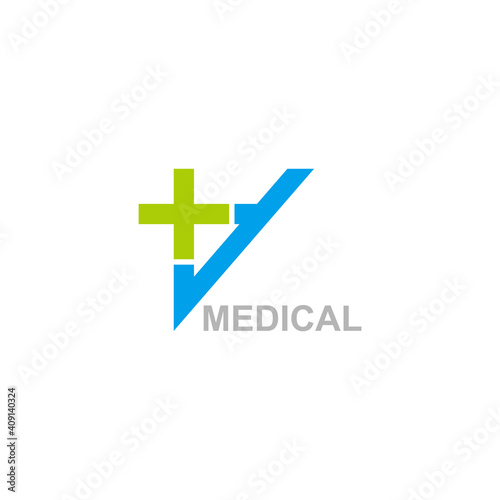 Fototapeta premium abstract letter v plus medical logo vector