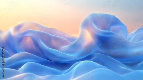 © Synthetic Stock Lab, Fototapeta premium Abstract light blue fabric waves, flowing silk texture background.