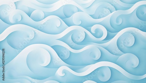 © sangkribo, Obraz premium Abstract light blue paper wavy background